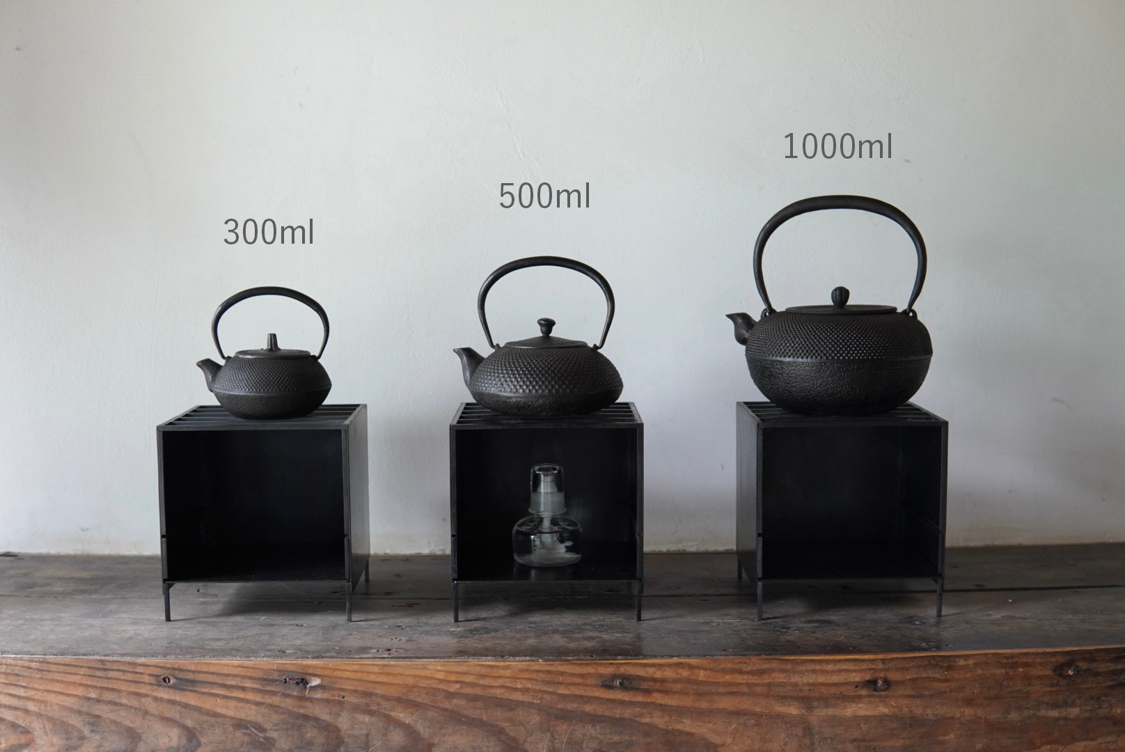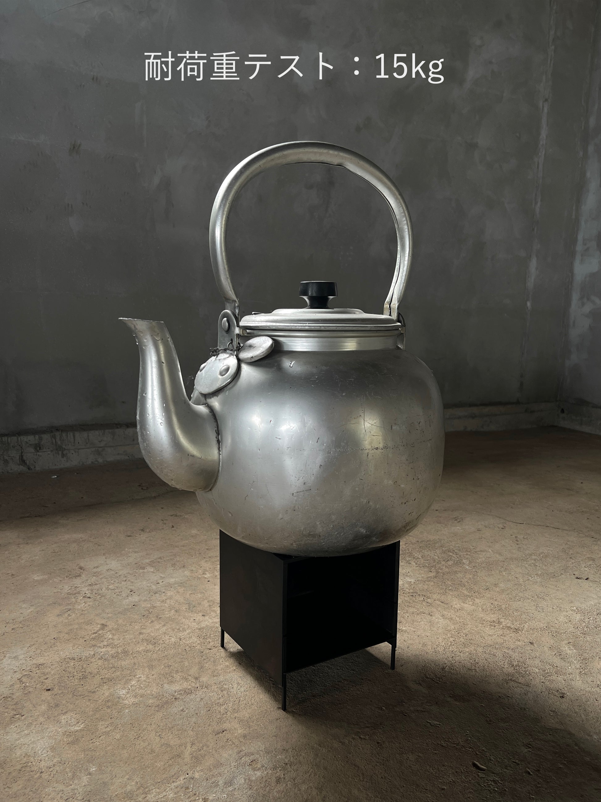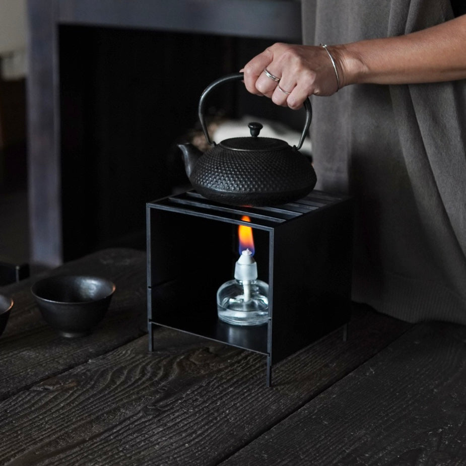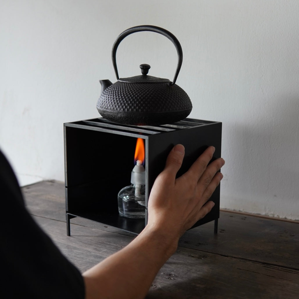 卓上炉は、炉や囲炉裏などの「火床(ひどこ)」を身近に楽しめるように設計された湯沸かし・保温器具です。灰の代わりにアルコールランプを用いることで、テーブルの上でも安心してご使用いただけます。さらに、中板の高さを調整すると、弱火・中火・強火の三段階で火力を切り替えることができ、用途に応じた火加減をお楽しみいただけます。